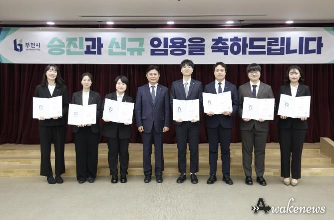 어웨이크뉴스 오경하 기자 | 부천시는 지난 23일 시청 소통마당에서 ‘2026년 1월 정기인사 임용장 수여식’을 열고, 3급 승진 1명을 비롯해 4급 승진 2명, 전보 3명, 5·6급 승진 17명, 신규 임용 7명 등 총 30명에게 임용장을 수여했다.