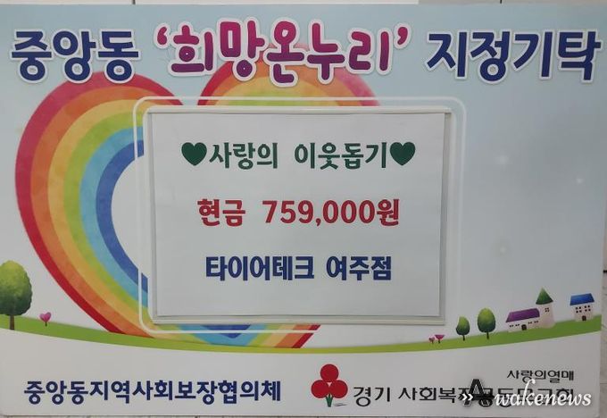 어웨이크뉴스 오경하 기자 | 타이어테크 여주점은 지난 23일 연말을 맞아 지역사회 취약계층을 돕기 위해 성금 75만9천원을 중앙동행정복지센터에 기탁했다.