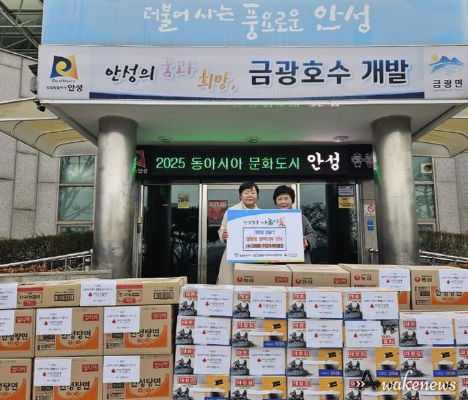 어웨이크뉴스 오경하 기자 | 안성시는 12월 23일, 금광면 주민자치위원회 양영순 위원장이 겨울철 취약계층 가구의 따뜻한 겨울나기를 돕기 위해 라면, 김 등 생필품 100만원 상당을 금광면 행정복지센터에 기탁했다고 밝혔다.