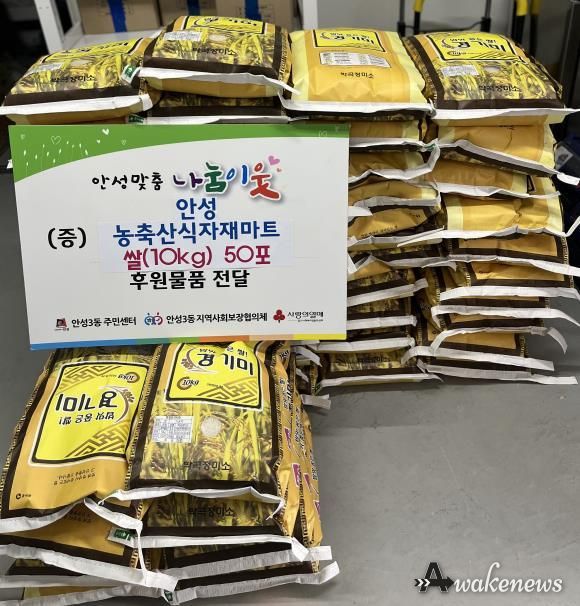 어웨이크뉴스 오경하 기자 | 안성농축산식자재마트는 지난 12월 22일, 안성3동행정복지센터에 쌀 10kg 50포를 기탁했다고 밝혔다. 이번 기부는 올해 네 번째로 이루어진 기부로, 지역 사회의 소외된 이웃들에게 지속적인 지원을 이어가고 있다.