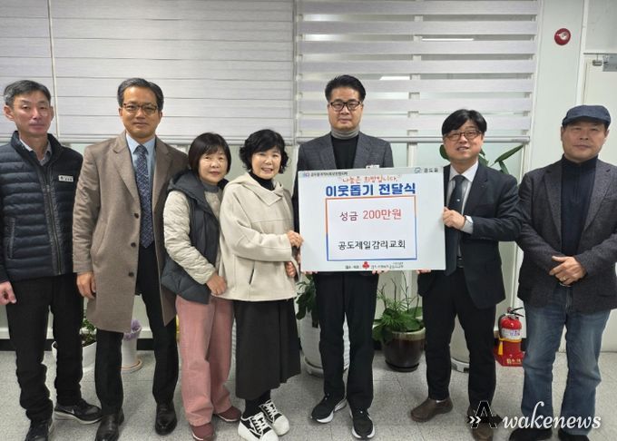 어웨이크뉴스 오경하 기자 | 공도제일감리교회는 12월 24일 지역사회의 어려운 이웃을 돕기 위해 공도읍에 기부금 200만원을 전달했다.