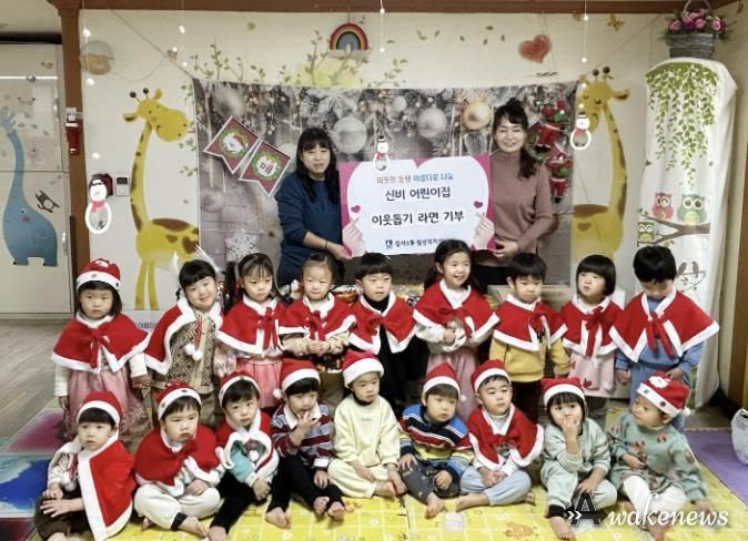 어웨이크뉴스 오경하 기자 | 수원시 장안구 정자3동은 지난 24일 신비어린이집 원아들이 크리스마스를 앞두고 정자3동 행정복지센터를 찾아 라면 26박스를 전달했다고 밝혔다.