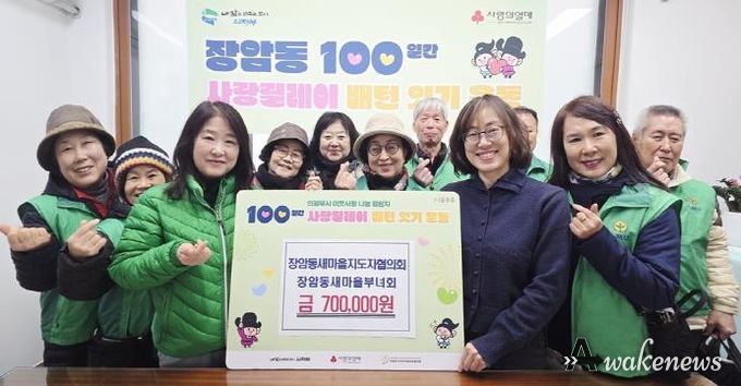 어웨이크뉴스 오경하 기자 | 의정부시 장암동주민센터는 12월 23일 장암동 새마을부녀회·새마을지도자협의회가 겨울철 취약계층을 돕기 위해 성금 70만 원을 기부했다고 밝혔다.