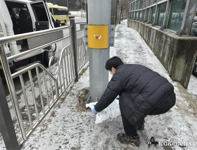 어웨이크뉴스 오경하 기자 | 동두천시 생연1동 행정복지센터는 지난 24일, 겨울철 강설과 결빙으로 인한 주민 낙상 사고를 예방하기 위해 관내 상습 결빙 구간에 제설제를 비치했다고 밝혔다.