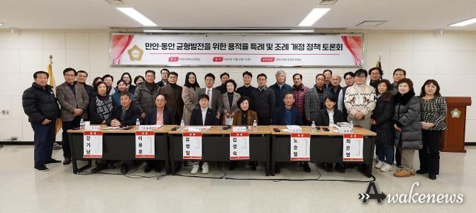 어웨이크뉴스 오경하 기자 | 안양시의회 김경숙 의원(국민의힘, 석수1·2동·충훈동)은 12월 24일 시의회 소회의실에서 '만안·동안 균형발전을 위한 용적률 특례 및 조례 개정 정책토론회'를 개최하고, 만안과 동안 간 개발 격차 해소를 위한 다양한 정책 대안을 논의했다.