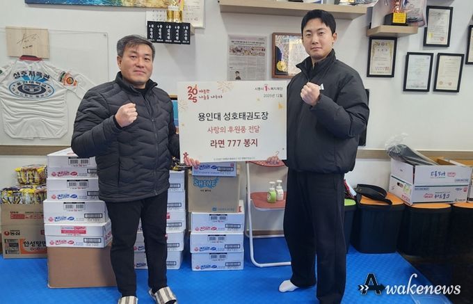 어웨이크뉴스 오경하 기자 | 시흥시 월곶동은 지난 12월 26일, 용인대성호태권도학원으로부터 연말연시를 맞아 라면 777개를 기부받았다고 밝혔다.