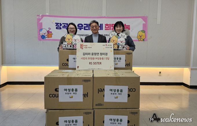 어웨이크뉴스 오경하 기자 | 시흥시 장곡동 행정복지센터는 26일 개인 후원자 김미라, 윤정연, 정미경씨가 관내 취약계층을 위해 260만 원 상당의 여성용품을 후원했다고 전했다.