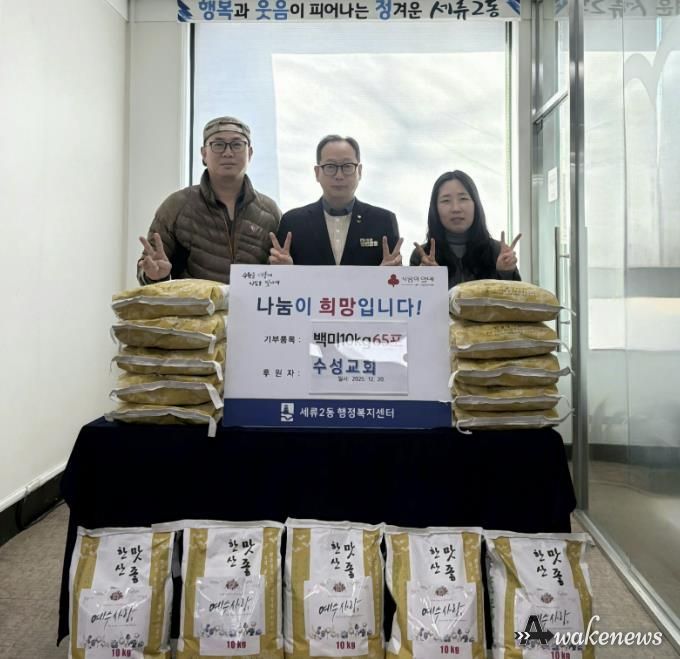 어웨이크뉴스 오경하 기자 | 지난 20일, 수원시 권선구 세류동에 소재한 수성교회는 연말연시를 맞아 세류2동행정복지센터에 백미 10kg 65포를 후원했다.