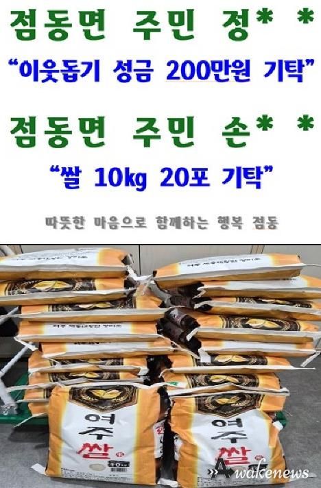 이와 함께 점동면 주민 정** 씨가 어려운 이웃을 위해 성금 200만원을 기탁했으며, 주민 손** 씨 역시 정성과 온기를 담은 쌀 10kg 20포를 전달했다.