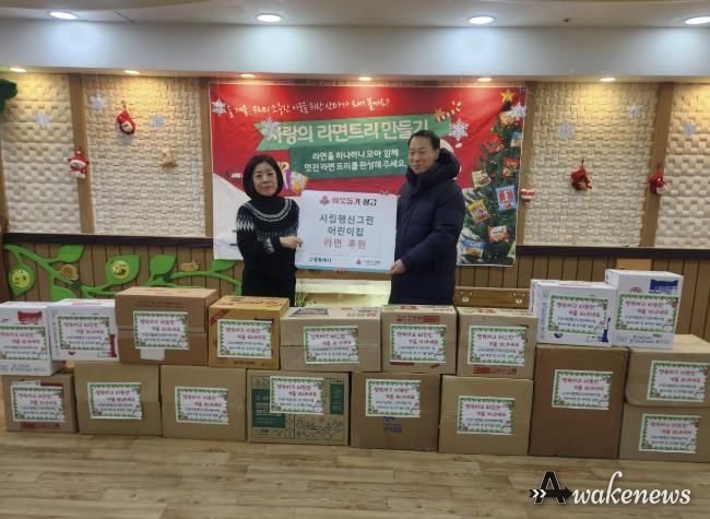 어웨이크뉴스 오경하 기자 | 고양특례시 덕양구 행신2동은 지난 26일, 시립행신그린어린이집에서 아이들과 부모, 교직원이 함께 마련한 라면 18박스를 후원했다고 밝혔다.