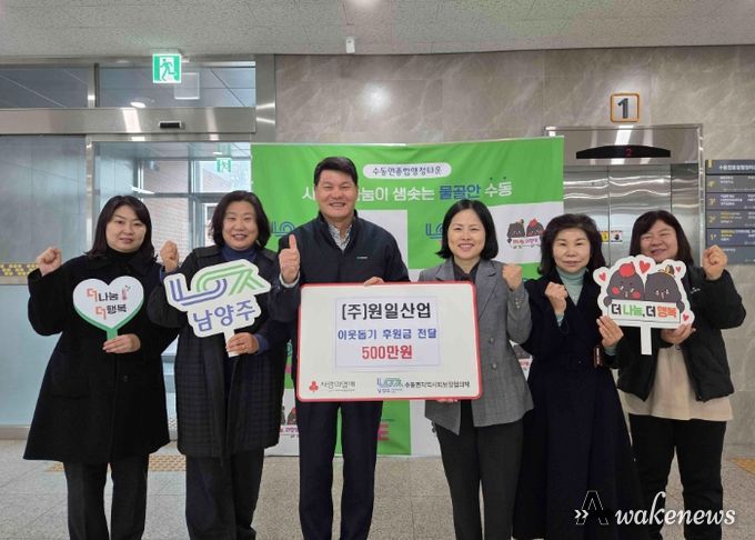 어웨이크뉴스 오경하 기자 | 남양주시는 29일 수동면 소재 ㈜원일산업에서 지역 내 어려운 이웃을 위한 후원금 500만 원을 경기사회복지공동모금회를 통해 수동면 지역사회보장협의체에 지정 기탁했다고 밝혔다.