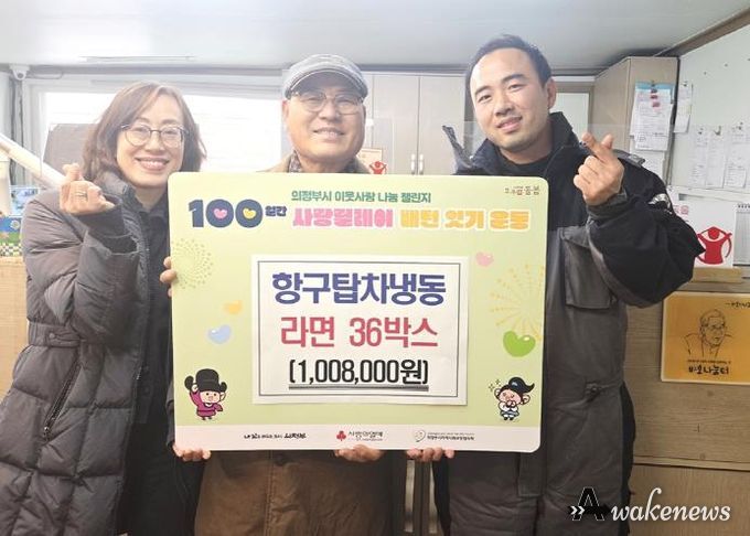 어웨이크뉴스 오경하 기자 | 의정부시 장암동주민센터는 12월 29일 항구탑차냉동이 라면 36상자(100만 원 상당)를 기부하며 ‘100일간 사랑릴레이 배턴 잇기’에 동참했다고 밝혔다.