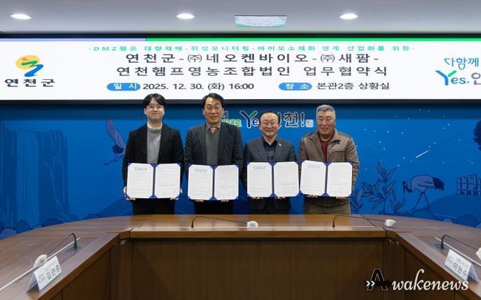 어웨이크뉴스 오경하 기자 | 연천군은 지난 30일 연천군청 본관 2층 상황실에서 ㈜네오켄바이오, ㈜새팜, 연천헴프영농조합법인과 함께 DMZ 지역 헴프(대마) 산업의 체계적 육성과 산업화를 위한 업무협약을 체결했다.