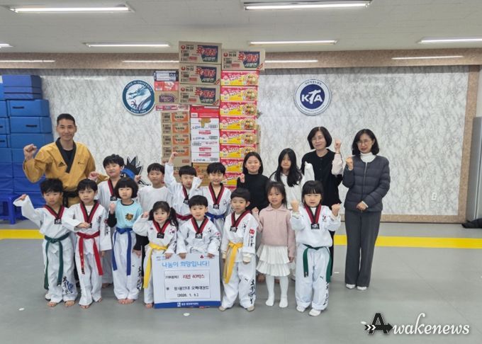 어웨이크뉴스 오경하 기자 | 지난 5일 수원시 권선구 오목천동 소재 용인대 오목태권도장은 원생들과 함께 준비한 라면 40박스를 평동행정복지센터에 기증했다.