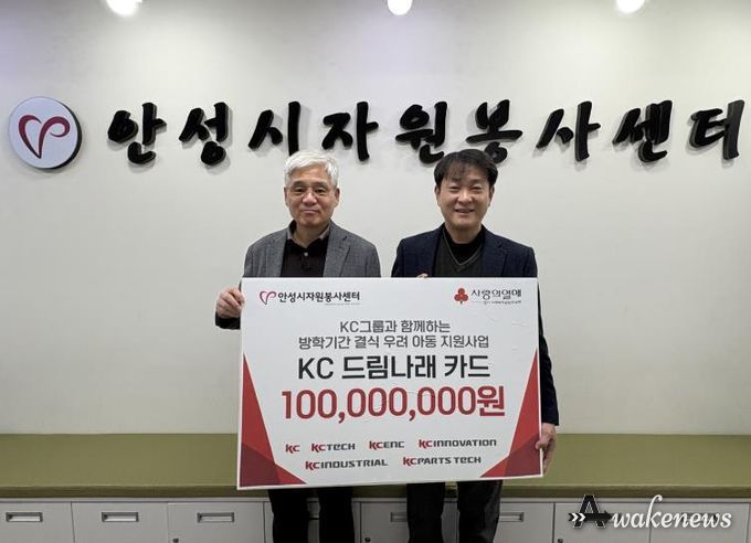 어웨이크뉴스 오경하 기자 | 지난 5일, 안성시자원봉사센터는 KC그룹과 함께 ‘KC 드림나래 카드’ 전달식을 갖고, 겨울방학 기간 중 결식이 우려되는 아동들을 위한 따뜻한 지원에 나섰다. 이날 전달식에는 김동성 안성시자원봉사센터장과 ㈜케이씨텍의 양호근 대표이사가 참석했다.