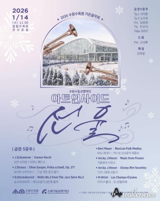 어웨이크뉴스 오경하 기자 | 수원특례시는 1월 14일 일월수목원 전시온실에서 수원시립교향악단 아트인사이드 ‘선율’을 개최한다.