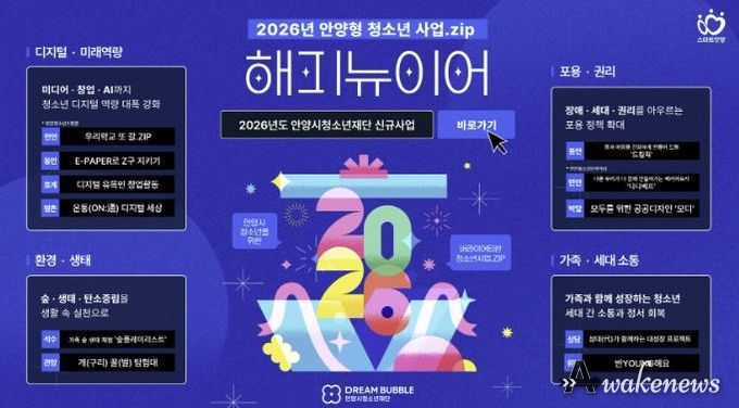 어웨이크뉴스 오경하 기자 | 안양시청소년재단은 2026년을 맞아 ‘청소년이 주도하는 변화의 물결, 모두가 함께하는 지속 가능한 미래’라는 비전 아래 10개 소속 기관을 주축으로 신규사업을 본격 추진한다.