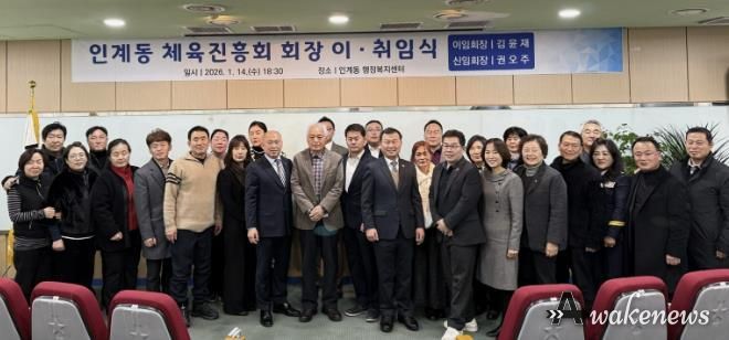 어웨이크뉴스 오경하 기자 | 수원시 팔달구 인계동 체육진흥회는 지난 14일, 인계동 행정복지센터에서 주요 내빈과 관계자 등 50여 명이 참석한 가운데 ‘인계동 체육진흥회장 이‧취임식’을 성황리에 개최했다.