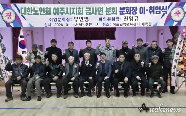어웨이크뉴스 오경하 기자 | 금사면은 1월 13일, 이포권역행복센터에서 2026년 대한노인회 금사면분회장 이·취임식을 성황리에 개최했다. 이날 행사에는 금사면 기관·단체장과 각 경로당 회장 등 관계자들이 참석해 금사면 노인회의 새로운 출발을 함께 축하했다.