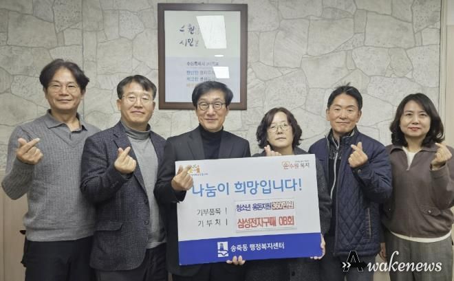 어웨이크뉴스 오경하 기자 | 수원시 장안구 송죽동은 지난 15일 삼성전자 구매OB회와 함께하는 ‘청소년 용돈지원사업’ 후원금 전달식을 개최했다고 밝혔다.
