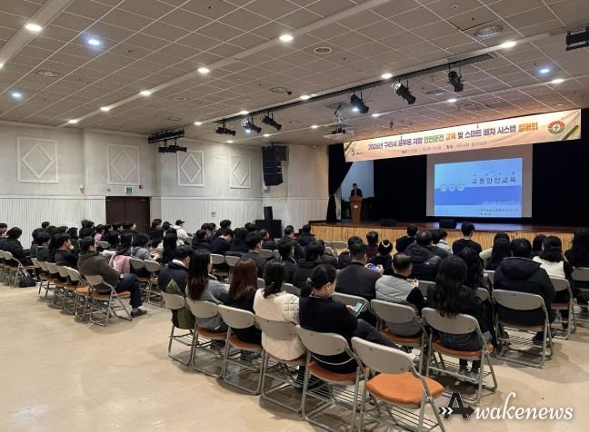 어웨이크뉴스 오경하 기자 | 구리시는 지난 1월 15일 시청 본관 1층 대강당에서 공무용 차량 관리 담당자와 운전자 등 시청 직원 100여 명을 대상으로 ‘2026년 공무용 차량 안전운전 교육 및 스마트 배차시스템 설명회’를 개최했다.