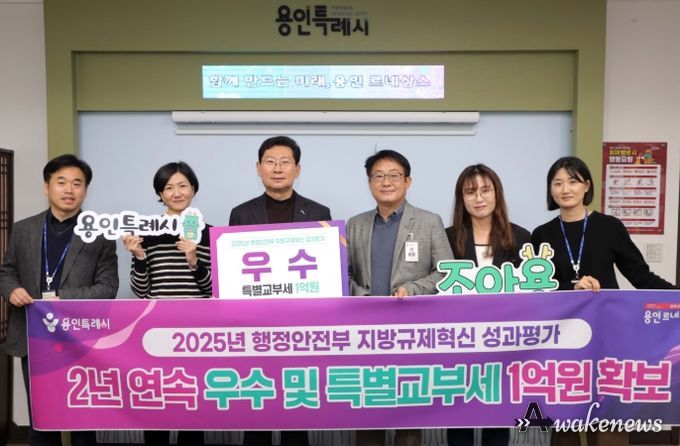 어웨이크뉴스 오경하 기자 | 용인특례시는 지난해에 이어 ‘지방규제혁신 성과평가’에서 우수 기관으로 선정돼 특별교부세 1억 원을 확보했다고 16일 밝혔다.