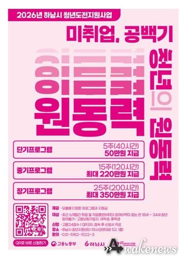 하남시는 오는 2월 12일 시작되는 중기 과정과 3월 4일 시작되는 단기 과정 참여자를 모집한다. 참여 희망 청년은 고용노동부 ‘고용24’ 홈페이지를 통해 온라인으로 신청할 수 있다.