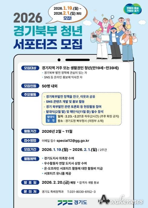 어웨이크뉴스 오경하 기자 | 경기도는 경기북부 발전에 대한 도민 인식을 높이고 그 필요성을 홍보하기 위해 1월 19일부터 2월 1일까지 ‘경기북부 청년 서포터즈 2기’를 공개모집한다.