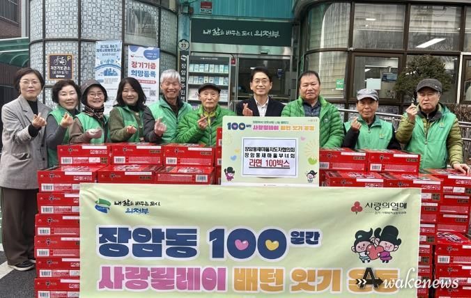 어웨이크뉴스 오경하 기자 | 의정부시 장암동주민센터는 1월 15일 장암동 새마을지도자협의회·새마을부녀회가 겨울철 어려운 이웃들을 위해 라면 100상자를 전달하며 ‘100일간 사랑릴레이 배턴 잇기’에 동참했다고 밝혔다.
