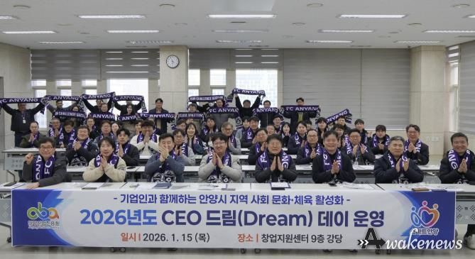 어웨이크뉴스 오경하 기자 | 안양산업진흥원은 15일 오후 3시30분 안양창업지원센터 강당에서 관내 기업인 150여 명을 대상으로 지역사회 문화·체육 활성화를 위한 ‘2026 CEO 드림(Dream) 데이’를 열었다.
