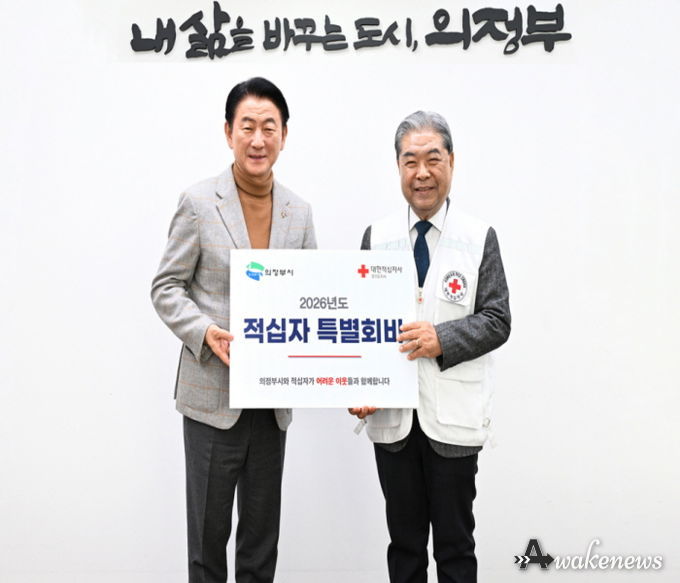 어웨이크뉴스 오경하 기자 | 의정부시는 1월 19일 시장실에서 대한적십자사 경기도지사에 ‘2026년도 적십자 특별회비’ 217만 원을 전달하며 지역사회의 나눔과 인도주의 실천에 앞장섰다.