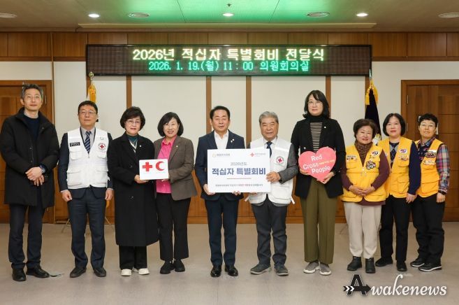 어웨이크뉴스 오경하 기자 | 의정부시의회는 19일 의원회의실에서 대한적십자사 경기도지사(회장 이재정)에 ‘2026년도 적십자 특별회비’를 전달했다.