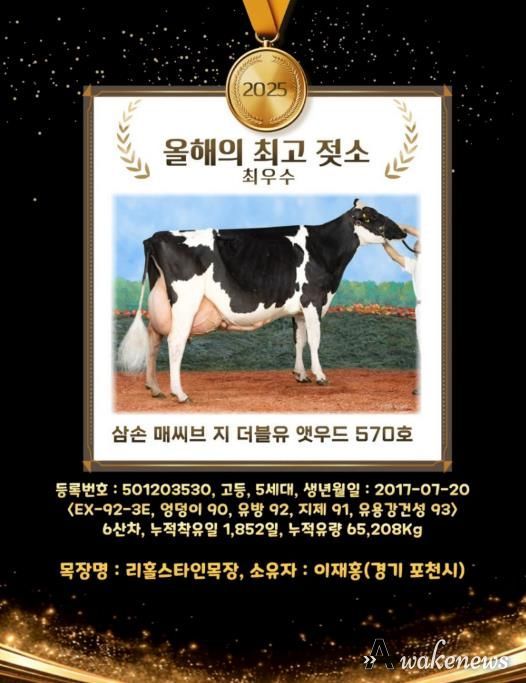 어웨이크뉴스 오경하 기자 | 포천시는 관내 낙농농가인 리홀스타인목장(대표 이재홍)이 2025년 ‘올해의 최고 젖소’를 배출했다고 밝혔다.