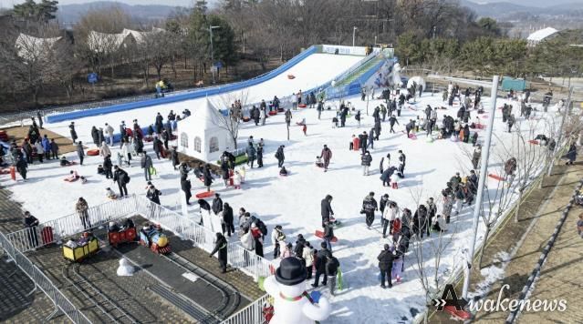 어웨이크뉴스 오경하 기자 | 의왕시 대표 관광 명소인 왕송호수공원(왕송못동로 307)을 배경으로 펼쳐지는 겨울 축제 ‘겨울아 놀자’에서 방학을 맞은 아이들이 눈썰매를 타며 즐거운 시간을 보내고 있다.