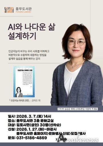 어웨이크뉴스 오경하 기자 | 김포시 풍무도서관에서는 김포시민을 대상으로 ‘AI와 나다운 삶 설계하기’를 오는 3월 7일 오후 2시부터 4시까지 운영한다.