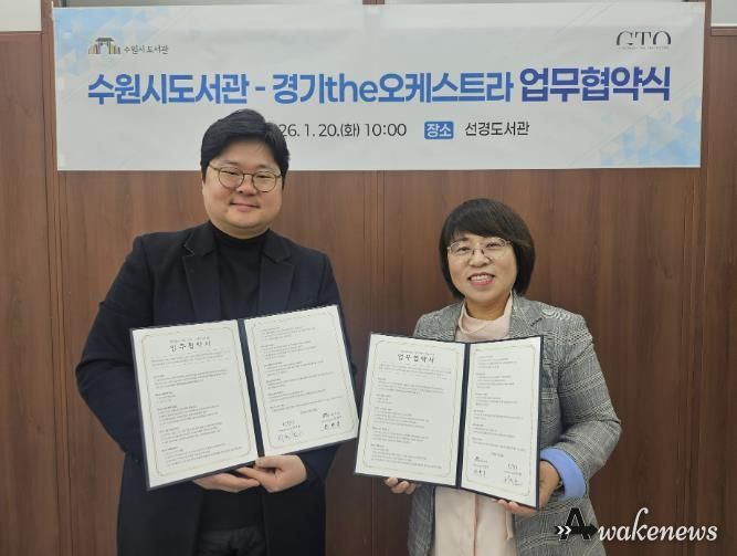 어웨이크뉴스 오경하 기자 | 수원시도서관은 경기더(the)오케스트라는 20일 수원시 도서관사업소에서 업무협약을 체결하고, 공공도서관을 중심으로 한 시민 참여형 문화예술 프로그램 운영에 협력하기로 했다.