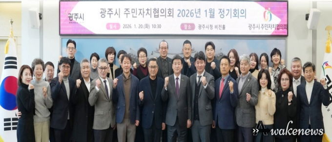 어웨이크뉴스 오경하 기자 | 광주시는 지난 20일 시청 비전홀에서 읍면동 주민자치위원장, 회장, 사무국장 등이 참석한 가운데 ‘광주시 주민자치협의회 2026년 1월 정기회의’를 열고 제10대 광주시 주민자치협의회를 이끌 협의회장과 임원을 선출했다.