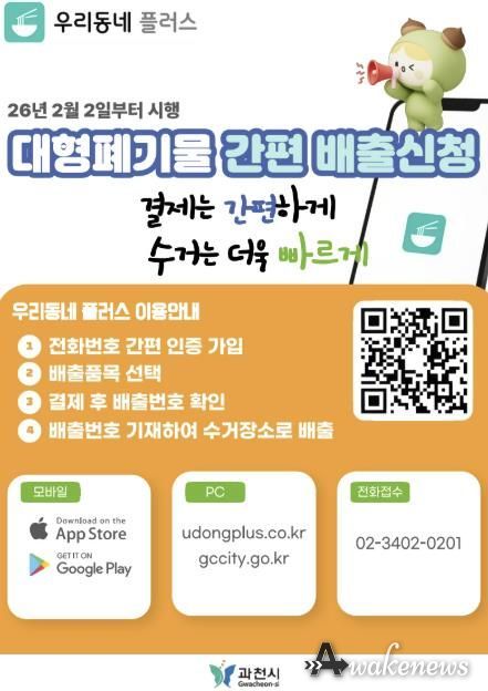 어웨이크뉴스 오경하 기자 | 과천시는 시민 편의를 높이기 위해 오는 2월 2일부터 대형폐기물 온라인·모바일 배출 시스템을 본격 운영한다고 밝혔다.