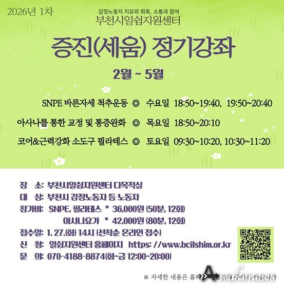 어웨이크뉴스 오경하 기자 | 부천여성청소년재단이 운영하는 부천시일쉼지원센터가 감정노동자의 증진강좌 참가자를 1월 27일 오후2시 부터 모집한다.