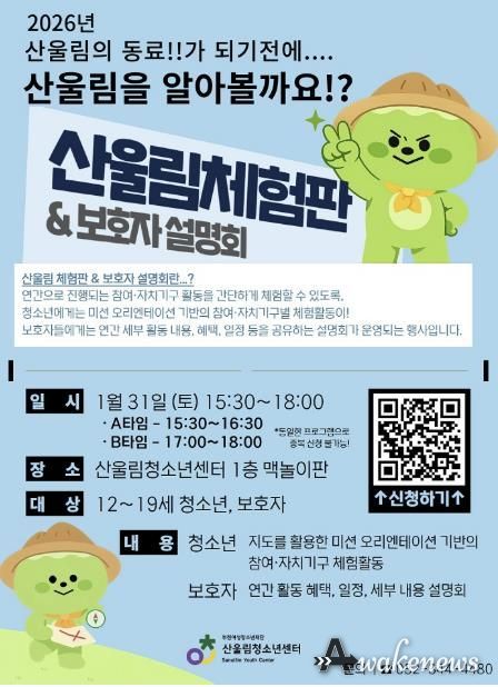 어웨이크뉴스 오경하 기자 | 부천여성청소년재단이 운영하는 산울림청소년센터는 오는 1월 31일, 2026년도 참여·자치기구 활동에 관심 있는 청소년과 보호자를 대상으로 ‘산울림 체험판 & 보호자 설명회’를 개최한다.