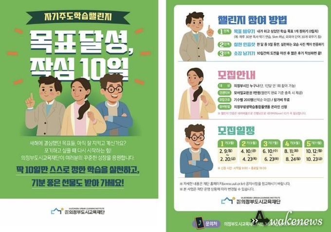 어웨이크뉴스 오경하 기자 | 의정부도시교육재단은 의정부 시민대학 ‘도전실험실’의 핵심 프로그램으로 자기주도학습챌린지 ‘목표달성, 작심 10일’을 운영한다고 밝혔다.