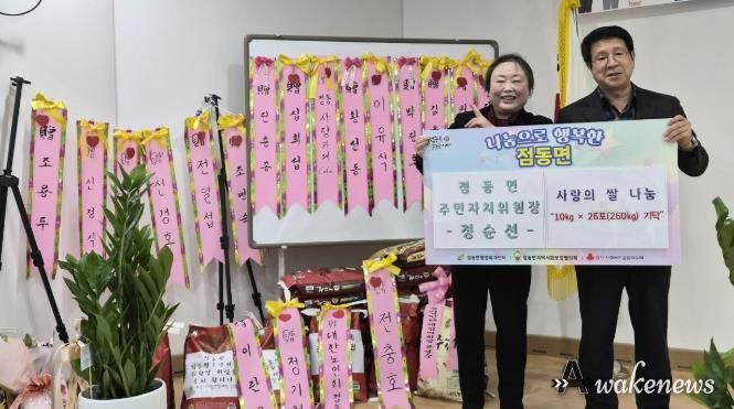 이번에 기부된 쌀은 정순선 신임 주민자치위원장이 취임을 축하받으며 화환 대신 받은 백미로, 축하의 마음을 개인에 머무르지 않고 지역사회와 함께 나누고자 하는 뜻에서 기탁하게 됐다.