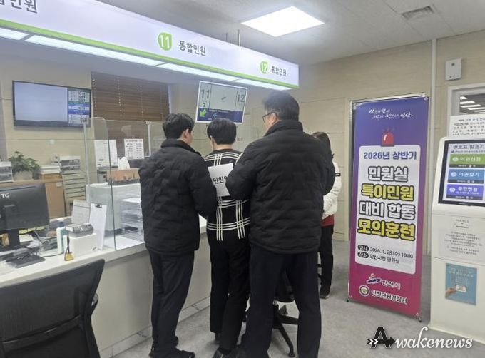 어웨이크뉴스 오경하 기자 | 안산시는 지난 28일 오전 시청 민원실에서 특이 민원 발생 상황에 대비한 비상 대응 모의훈련 및 출입제한·퇴거 조치 교육을 실시했다고 29일 밝혔다.