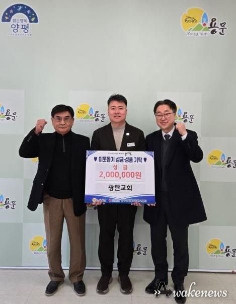 어웨이크뉴스 오경하 기자 | 양평군 용문면은 광탄교회가 지난 28일, 지역 내 어려운 이웃을 돕기 위해 이웃돕기 성금 200만 원을 기탁했다고 밝혔다.