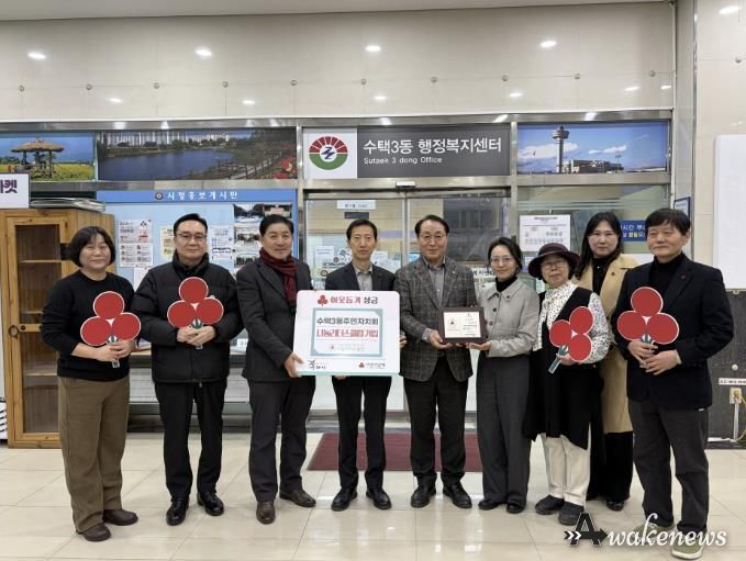 어웨이크뉴스 오경하 기자 | 구리시 수택3동 행정복지센터는 지난 28일, 경기사회복지공동모금회와 함께 수택3동 주민자치회의 나눔리더스클럽 가입식을 개최하고 인증패를 전달했다.