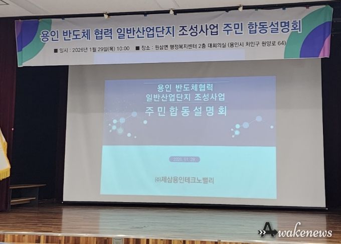 어웨이크뉴스 오경하 기자 | 용인도시공사가 지분 참여한 ㈜제삼용인테크노밸리는 29일 처인구 원삼면 행정복지센터 대회의실에서 ‘용인 반도체협력 일반산업단지’ 조성을 위한 합동설명회를 개최했다고 밝혔다.