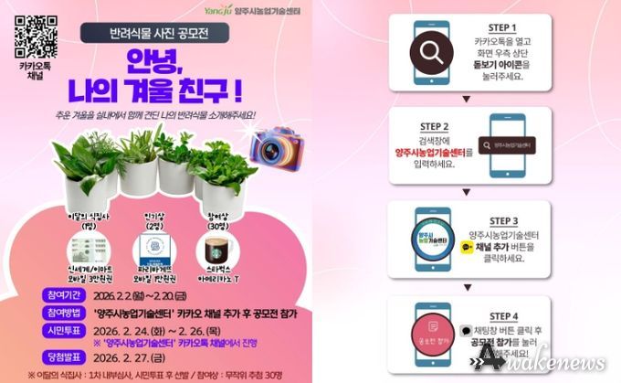 어웨이크뉴스 오경하 기자 | 양주시가 시민들과의 소통을 강화하고 도심 속 녹색 생활 실천 문화를 조성하기 위해 2월 2일부터 ‘2026년 반려식물 사진 공모전’을 개최한다.