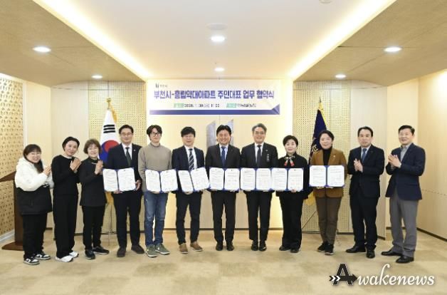 어웨이크뉴스 오경하 기자 | 부천시는 1월 30일 시청 만남실에서 흥립약대아파트 주민대표, 현대흥립통합재건축추진준비위원회와 함께 ‘현대건설 보유 지분 기부채납(무상귀속)을 위한 업무협약’을 체결했다.