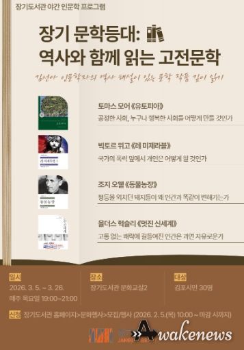 어웨이크뉴스 오경하 기자 | 김포시 장기도서관은 야간 인문학 프로그램 ‘장기 문학등대: 역사와 함께 읽는 고전문학’을 오는 3월 5일부터 3월 26일까지 매주 목요일 저녁 7시에 장기도서관 문화교실2에서 운영한다고 밝혔다.