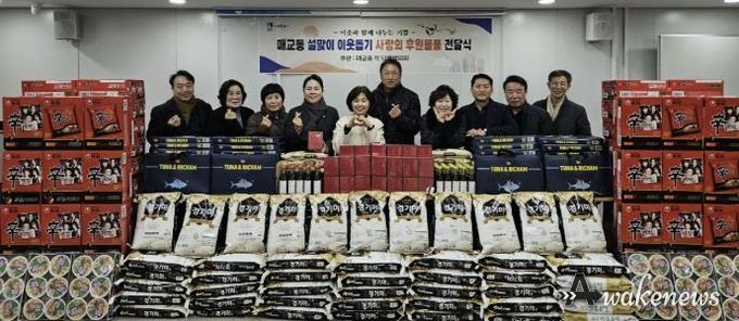 어웨이크뉴스 오경하 기자 | 지난 2일 수원시 팔달구 매교동은 설 명절을 맞이하여 관내 소외되는 어려운 이웃이 없도록 설명절 이웃나눔 후원물품 전달식을 가졌다.
